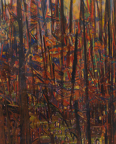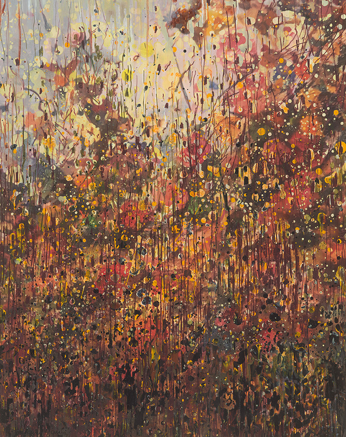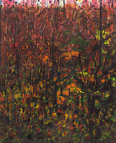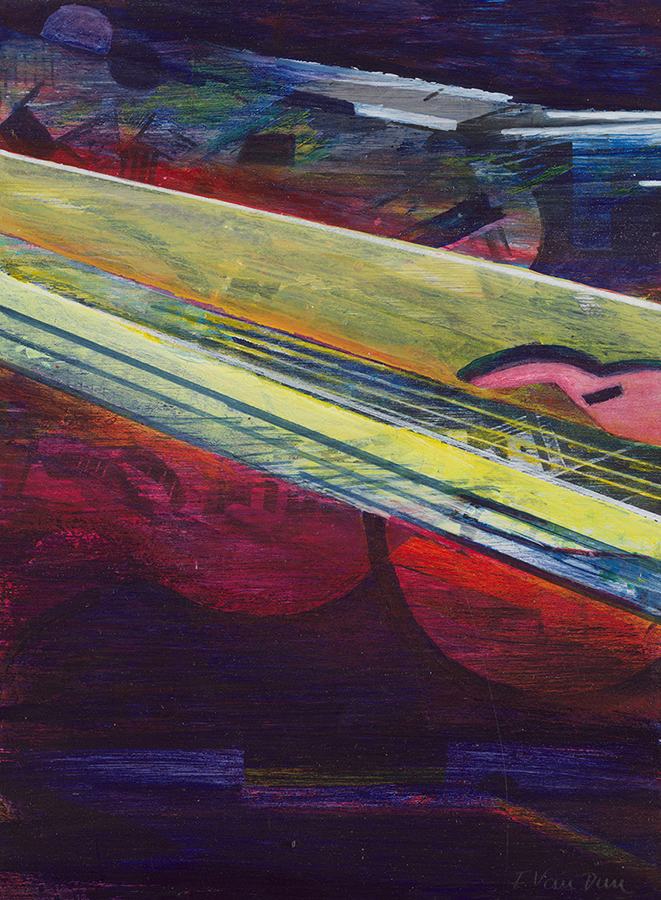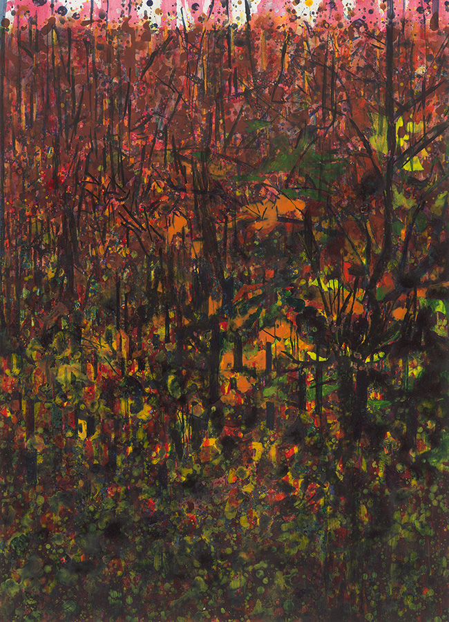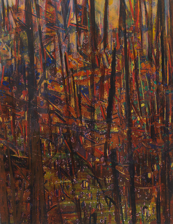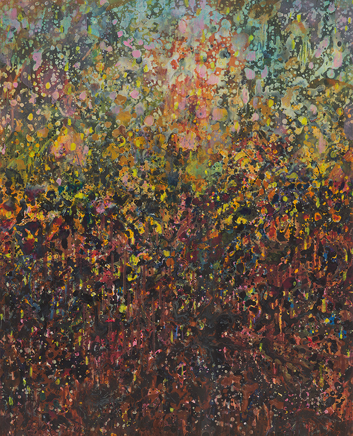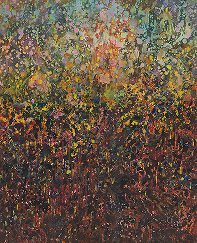 Frieda Van Dun (Weelde 1951) stelt nieuw werk voor onder de titel Alles stroomt. In een eigen artistieke versie vertolkt zij de stelling van de Griekse natuurfilosoof Heraclitus (ca. 500 v. Chr.) Panta Rhei: alle dingen veranderen voortdurend, alles is steeds in wording, in onophoudelijke beweging. Frieda Van Dun woont en werkt in Antwerpen. Zij heeft reeds gedurende ruim drie decennia menigvuldige contacten met de kunstenaars rond de galerie De Zwarte Panter. Haar eerste groepstentoonstelling in de galerie De Zwarte Panter dateert van 2008 met als titel ‘(W)onderweg’, een uniek project rond autisme. Haar eerste individuele tentoonstelling in de galerie had plaats in het najaar 2011 onder de titel ‘De weg naar beweging’ met uitgave van een (bibliofiel) boek met teksten van Roger de Neef. Haar inspiratiebron is steeds de natuur geweest: bloemen, planten, dieren, vissen, vogels, maar ook de muziek. Zij liet zich voor de huidige tentoonstelling inspireren door de minimalistische, repetitieve muziek van de generatiegenoten, de Amerikanen Philip Glass en Steve Reich. Maar de natuur en de muziek zijn slechts een aanleiding. Het werk van Frieda Van Dun handelt over het picturaal verlangen, over het schilderkunstig proces, over de liefde voor het schilderen. Zij experimenteert met verschillende dragers en technieken: acryl op doek of op papier, gouache op papier, collage, églomisé, 3-D printing, keramiek, etsen, … In die geest is haar werk onderzoekend, wat beantwoordt aan een actuele trend. Hedendaags is ook het deconstruerend karakter van haar eigen abstraherende stijl, die tussen de figuratie en de abstractie ligt.
